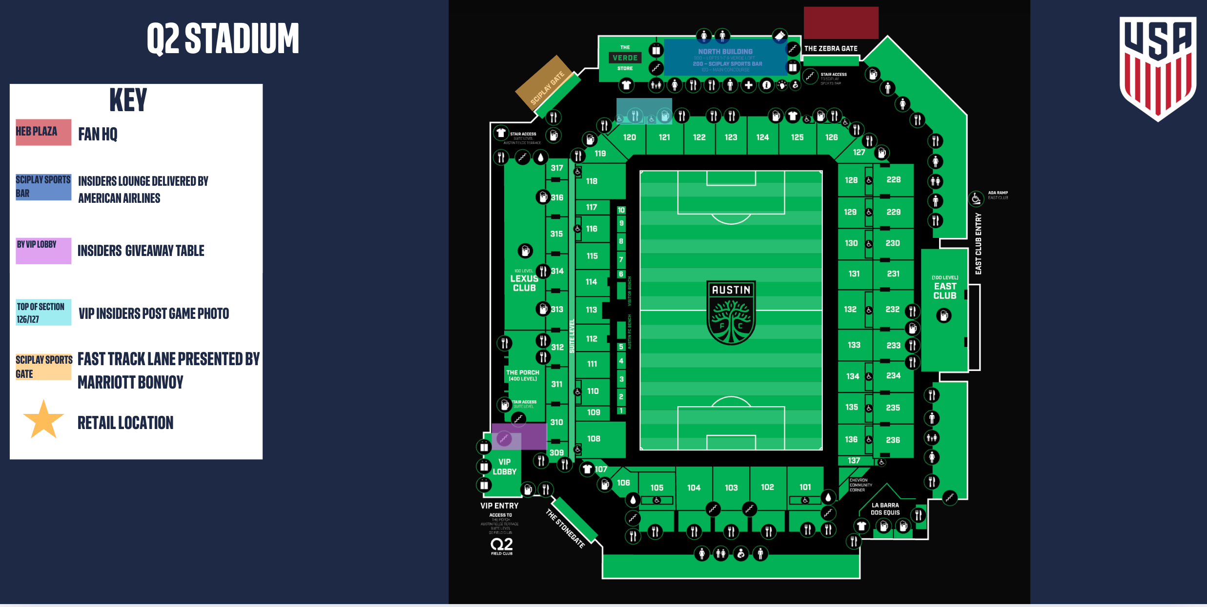 Want to skip the lines? Head to the Fast Track Lane presented by Marriott Bonvoy at SciPlay Gate and show that you're a U.S. Soccer Insider or Marriott Bonvoy member to access the express lane.