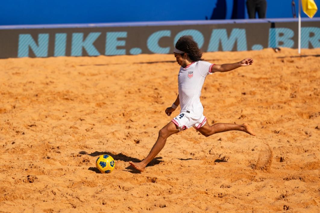 JOAO PESSOA, Brazil (March 18, 2026) – Playing under hot and humid afternoon conditions, the U.S. Men’s Beach Soccer National Team got an equalizing goal from Fredo Dilbert but ultimately fell 3-1 to Japan in the opening match of the 2026 Paraíba World Beach Games.
